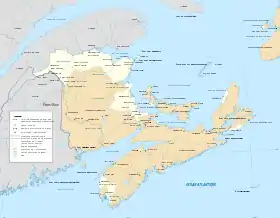 З 1713 року за Утрехтською угодою Акадію передано Великій Британії, а в 1755 році акадійців примусово депортовано. Хоч акадійцям у 1766 році дозволено повернутися на батьківщину після припинення існування Нової Франції, у Нью-Брансвік у міжчасі переселились чимало британців. Повернувшись, акадійці розселилися невеличкими групами по території Нью-Брансвіку, Нової Шотландії та Острова Принца Едварда. Найбільш компактно заселили вони території на півночі Нью-Брансвіку (Акадійський півострів, місто Едмундстон) та місто Монктон.