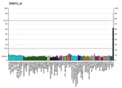 Кодований геном білок за функцією належить до фосфопротеїнів. Задіяний у такому біологічному процесі, як транспорт. Локалізований у клітинній мембрані, мембрані, цитоплазматичних везикулах, апараті гольджі.