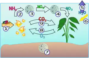 Атмосферний азот можуть включати у синтез органічних сполук лише азотфіксуючі бактерії та синьо-зелені водорості. Саме ці прокаріотичні організми є джерелом азоту для усіх живих організмів. Азотофіксатори постачають нітроґен рослинам, а ті тваринам. Тварини у процесі своєї життєдіяльності виділяють у навколишнє середовище сечовину й аміак, які бактеріями перетворюються у доступні для рослин нітрити й нітрати.