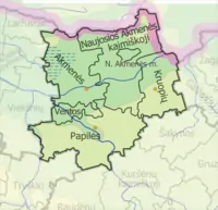 - Акмянське (лит. Akmenės seniūnija; адміністративний центр: Акмяне)