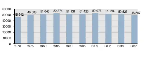 Станом на 1 квітня 2017 року населення Ако становить 47 656 особи. Густота населення 375,6 ос./км². Нижче приведена діаграма зміни чисельності населення міста за даними переписів Японії.[3]