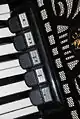 - ліва клавіатура, на якій переважно вказівним і середнім пальцями лівої руки[3] здійснюється басово-ритмовий акомпанемент основної мелодії.