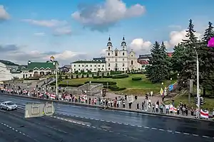 21 серпня о 18:00 у Мінську розпочався масовий мирний мітинг «Ланцюг покаяння»[25]. Його учасники закликали припинити насильство та вишикувалися вздовж доріг у живих ланцюгах — від місця поховання жертв масових репресій кінця 1930-х у Куропатах, на північній околиці міста, до місця жорстокого побиття та катування затриманих на вулиці Акрестіна[26], розташованій на південному заході міста[27][28].