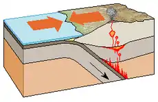 - Акреція континенту — розростання континенту шляхом прирощування і речовинно-структурних перетворень кори океанічних сегментів в кору континентальну. Протилежний А. процес -деструкція (роздроблення континентів на фрагменти) — рівномасштабний функціонально пов'язаний і одночасний процес. Близькі явища спостерігаються в океанічних сегментах кори.
