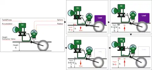 Практично, система бере на себе функцію самовирівнювання та зміни дорожнього просвіту, остання з яких пов'язана із швидкістю руху транспортного засобу з точки зору покращення його аеродинаміки на великих швидкостях.