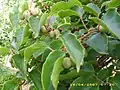 Досягає висоти до 30 м, діаметр стовбура до 15 см. Кора світло-коричнева, поздовжньо відшаровується. Трав'янисті верхівки пагонів з червоними волосками.