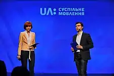 ![]() Аліна Акуленко разом з Юрієм Табаченком представляють радіоплатформу на презентації суспільного мовлення 7 квітня 2015 року у Мистецькому Арсеналі | |