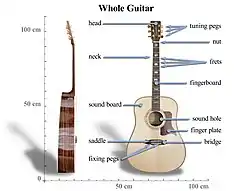 При виготовленні дек акустичних гітар використовують матеріали з малим затуханням коливань, що дозволяють отримати рівний та широкий спектр (смерека, махагоні, нато, іноді клену). Грифи виготовляють з міцної деревини з малою усадкою (махагоні, палісандр, нато).