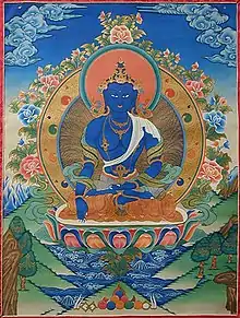 Синій колір Акшобх'ї асоціюється з водою, здатною відображати ясно, як дзеркало.