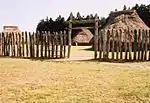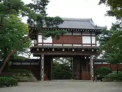 Замок Акіта — форпост японської держави Ямато на землях акітських автохтонів еміші впродовж 8 — 11 століть. Сьогодні від нього збереглися лише руїни. Ряд будівель і головні ворота реставровані. | ![]() |