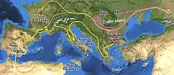 - міграція одного з аланських племен (ревксінали) на захід ймовірно була викликана певними політичними змінами у Середній Азії (як приклад — династія Аравеліани у алан-танаїтів співзвучна назві однієї з племених груп саків — саки-аравали);