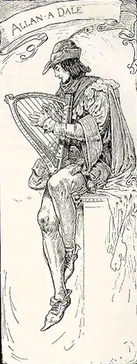 - У романі Вальтера Скотта «Айвенго» в російській перекладі менестреля звуть Аллен з Лощини . Брат Тук і Робін Гуд відгукуються про нього не в найкращих тонах, оскільки Аллен любить випити елю і дуже часто буянить. Так, Робін дізнається, що Аллен пограбував абата Жорво, зажадав з того великий викуп і погрожував повісити бранця в разі непокори. Втім, Робін і брат Тук на захист Аллена кажуть, що той вірний завжди своєму слову і ніколи не відступає перед своєю метою. Зовнішність Аллена описується в кінці роману: він постає як «кремезний підліток з арфою за плечима» і є менестрелем аж ніяк «не просто звання».
