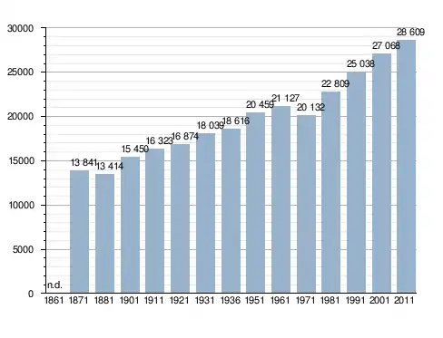 Станом на 31 грудня 2014 року в муніципалітеті офіційно проживали 2104 іноземці з 53 країн, серед них 1623 громадяни країн Євросоюзу та 19 громадян України.[4]