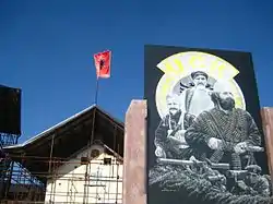 У постконфліктному стані косовські бійці ОАК вшановувались косовськими албанськими товариствами шляхом публікації такої літератури, як біографії, встановлення пам'ятників та спонсорство пам'ятних заходів.[296] Подвиги Адема Яшарі святкували і перетворили на легенду колишні члени ОАК, деякі в уряді, та косовське албанське суспільство, результатом чого стали пісні, література, пам'ятники, меморіали з вулицями та будівлями, що носять його ім'я по всьому Косово.[297][298] У контексті деакцентування на ісламі косовські албанці проявляють інтерес до християнського походження та спадщини албанців, зокрема Ларамани (косівські крипто-католики), які допомагали представити албанців як споконвічно європейців, незважаючи на те, що вони мусульмани.[299] Стародавні албанські традиції в регіоні Дрениця, що називають місцевим середньовічного сербського діяча Мілоша Обіліча (алб. Millosh Kopiliq), який вбив султана Мурада I, використовувався в косовських шкільних підручниках та деякими албанськими націоналістами, щоб претендувати на лицаря як албанця.[300] Встановлення участі албанців у битві за Косово стало засобом для косовських албанців претендувати на коріння європейців та відкинути історичний перехід до ісламу. У контексті битви за Косово та побудови нації деякі в урядових колах та широкому косовському албанському суспільстві просували розповідь про постійний опір албанців від середньовіччя до сучасности державам та народам, які вважаються іноземними окупантами.[301] З проголошенням незалежности (2008 р.) Уряд Косова просунув країну як на внутрішньому, так і на міжнародному рівні як Новонародженого, що генерує ідеологію, яка намагається порвати з минулим та встановити демократичне багатокультурне майбутнє.[302] Албанський націоналізм у Косово є світським, тоді як іслам переважно підпадає під параметри національної та культурної ідентичности, що спричиняє часом панівну кланову та сімейну ідентичність.[303] У публічній сфері часом іслам виникає, щоб кинути виклик домінуючому націоналістичному погляду на те, що албанці є поверхневими мусульманами, проте політична сфера залишається переважно світською.[240][304]