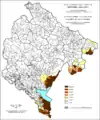 Розселення албанців по муніципалітетах, %, 2003, перепис.