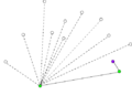 Далі, точки мають бути відсортовані в порядку зростання кута, який вони разом з P утворюють з віссю х. Будь-який алгоритм сортування підходить. Для пришвидшення обчислень, не обов'язково визначати кут, що ці точки утворюють з віссю х; замість цього достатньо обчислити котангенс цього кута: це монотонно спадна функція на проміжку і може бути обчислена простими арифметичними операціями.
