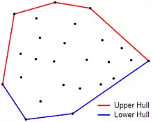 Об'єднайте L і U, щоб отримати опуклу оболонку точок P.