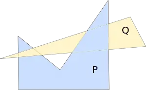 - Якщо крайні значення Z-координат усіх вершин P лежать далі, ніж Q, сортування тривіальне. P сортується пізніше.