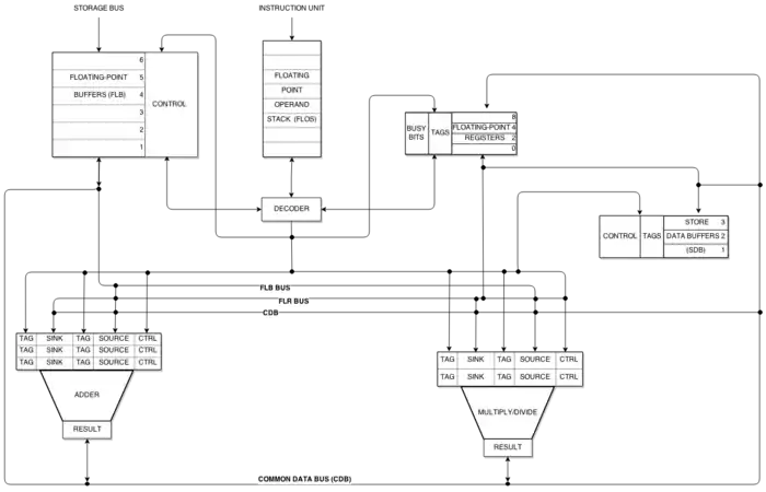 - Tomasulo, Robert M. (Jan 1967). An Efficient Algorithm for Exploiting Multiple Arithmetic Units. IBM Journal of Research and Development (IBM) 11 (1): 25–33. ISSN 0018-8646. doi:10.1147/rd.111.0025.