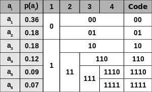 - У префіксному коді для першої частини алфавіту присвоюється двійкова цифра «0», другої частини — «1».