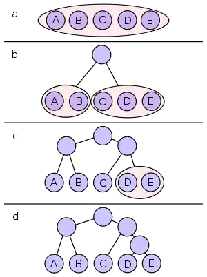 - Отримані частини рекурсивно діляться і їх частинам призначаються відповідні двійкові цифри в префіксному коді.