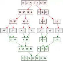 - Cormen, Thomas; Leiserson, Charles; Rivest, Ronald; Stein, Clifford (2009). «Section 27.3: Multithreaded merge sort». Introduction to Algorithms (Third изд.). MIT Press and McGraw-Hill. стр. 797—804. ISBN 978-0-262-03384-8.