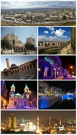 ![]() Цитадель Алеппо • Старе місто Алеппо та аль-Мадіна Велика мечеть Алеппо • Готель «Барон» Собор святого Ілляса • Річка Квейк Панорама Алеппо Координати 36°13′00″ пн. ш. 37°10′00″ сх. д.