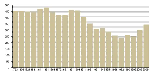 Динаміка населення (base Cassini de l'EHESS pour les nombres retenus jusque 1962[3], base Insee à partir de 1968 (population sans doubles comptes puis population municipale à partir de 2006)[4] · [5] ):