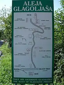 Алея, протяжністю понад 6 км, розташована уздовж дороги, що з'єднує найменше місто в світі Хум з селом Роч і являє собою дорогу, по обидва боки якої знаходяться скульптури у вигляді письмен на глаголице.