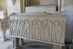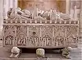 У XIII—XIV століттях Алкобаський монастир перебував під особливою опікою португальських королів. Тут були поховані Афонсу ІІ з Урракою та Афонсу ІІІ з Беатрисою. У монастирській церкві також збереглися величні готичні гробниці короля Педру І та його коханки Інес де Кастро. Гробниці останніх двох, замовлені королем Педру І ще за життя, вважаються найкращими зразками готичної скульптури в Португалії.
