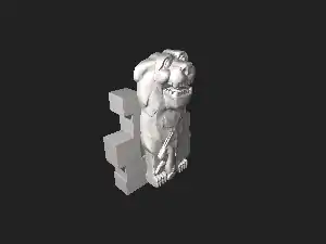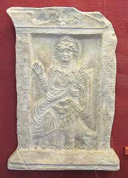 Модель статуї лева в Пальмірі. На лівій лапі напис: «Нехай благословить Аллат кожного, хто не проллє кров у цьому святилищі».