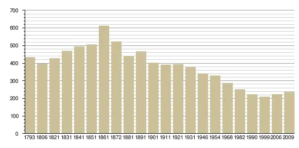 Динаміка населення (base Cassini de l'EHESS pour les nombres retenus jusque 1962[3], base Insee à partir de 1968 (population sans doubles comptes puis population municipale à partir de 2006)[4] · [5] ):