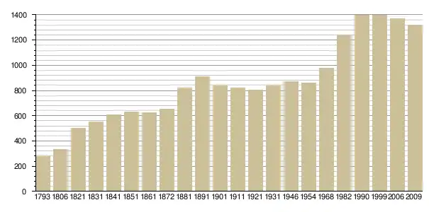 Динаміка населення (base Cassini de l'EHESS pour les nombres retenus jusque 1962[3], base Insee à partir de 1968 (population sans doubles comptes puis population municipale à partir de 2006)[4] · [5] ):