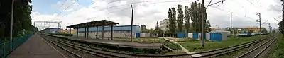 Розміщується між станціями Київ-Волинський та Святошин. Розташований на дублюючій залізничній колії, що сполучає станцію Київ-Волинський з Північним півкільцем в обхід станції Борщагівка. Ця лінія має переважно вантажне значення. З основною ж колією ця лінія з'єднується невеликою сполучною гілкою.