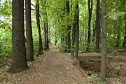 Стежка через лісопарк від платформи до станції швидкісного трамвая «Сім'ї Сосніних»