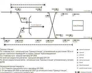 Через розташування за станцією довколишніх наземних об'єктів не були побудовані оборотні тупики. Їх замінив перехресний з'їзд перед станцією. Потяги в бік Красногвардійської відправляють з обох станційних колій.