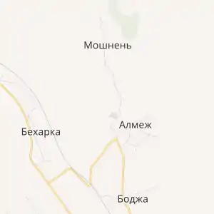 - У 2002 році до складу комуни Алмеж також входили села Бехарка, Коцофеній-дін-Фаце (зараз у складі комуни Коцофеній-дін-Фаце)