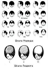 Ступінь вираженості андрогенетичної алопеції характеризується для чоловіків за шкалою Норвуда, для жінок — за шкалою Людвіга.