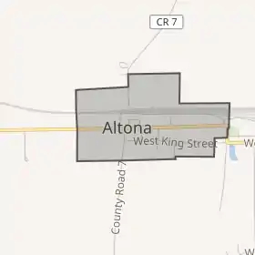 Алтона розташована за координатами 41°21′07″ пн. ш. 85°09′09″ зх. д. (41.352080, -85.152465)[2]. За даними Бюро перепису населення США в 2010 році місто мало площу 0,56 км², уся площа — суходіл. В 2017 році площа становила[3] 0,53 км², уся площа — суходіл.