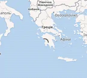 | • координати | 37°36′46″ пн. ш. 21°27′05″ сх. д. |