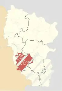 У складі району території Алчевської міської, Зимогір’ївської міської, Кадіївської міської територіальних громад, затверджених Кабінетом Міністрів України.