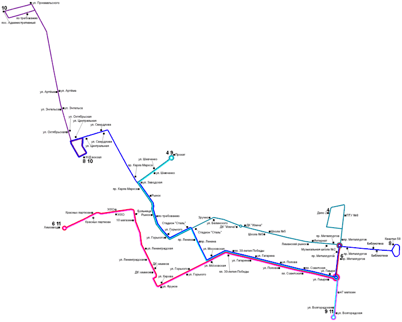 - побудовані диспетчерські пункти на залізничному вокзалі, на кінцевій «Прокат» і на кільці заводу ЗБВ (але так і не введений в експлуатацію, зараз напівзруйнований);