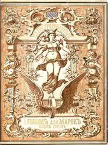 У Росії перший «Ілюстрований альбом для марок всіх країн» було випущено в 1889 році у видавництві Отто Кірхнера. Його було підготовлено І. І. Кревінгом — одним з перших російських маркових торговців. Альбом вийшов у двох форматах — середньому та малому. У передньому слові зазначалося, що видавництво альбому мало на меті ближче познайомити всіх охочих зі збиранням марок і дати можливість колекціонерам правильно розташувати своє зібрання. Також в передньому слові давались поради, як правильно його вести. Наприклад, було рекомендовано видаляти з погашених марок зайвий папір, «щоб краще видні були зубчасті краї їхні», клею брати не більше краплі, «а краще всього застосовувати в ділі папірці» — ніжки. Всього в альбомі зафіксовано 222 поштові видання, серед яких не лише поштові марки. У верхній частині кожного аркуша, присвяченого певній країні, зазначено назву держави, площа, яку вона займає, число жителів, грошова одиниця; ліворуч розміщено портрети правителів. На останній сторінці альбому повідомлялося, що всі охочі можуть придбати «поштові, телеграфні, гербові марки, а також марки приватних поштових установ всіх країн та російських земських пошт за ціною від 1 копійки до 75 рублів, а також суміш різних марок для обклеювання кімнат, від 50 копійок за тисячу і дорожче».