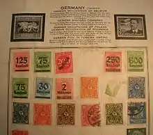 Лист альбому з передбаченими місцями для марок, але без їхніх зображень, та з поданими відомостями щодо кожної країни (на прикладі марок німецької пошти за кордоном)