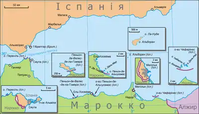 - Розташування: за 90 км від іспанської Альмерії, за 50 км від мису Тлета-Мадарі на марокканському узбережжі.