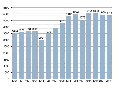 Станом на 31 грудня 2014 року в муніципалітеті офіційно проживало 246 іноземців з 15 країн, серед них 47 громадян країн Євросоюзу та 14 громадян України.[4]