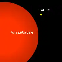 Альдебаран (від араб. الدبران (аль-дабаран) — «послідовник», α Тельця) — найяскравіша зоря у сузір'ї Тельця та одна з найяскравіших зір на нічному небі. Через розташування у «голові» Тельця та червоний колір, зорю часто називають Бичаче око. На небосхилі Альдебаран можна знайти на тлі розсіяного скупчення Гіади, проте він не входить до його складу, а просто розташований на лінії між Землею та скупченням.