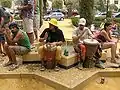 Visitantes tocando timbales durante la X edición de Etnosur, julio de 2006
