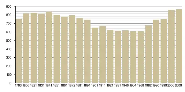 Динаміка населення (base Cassini de l'EHESS pour les nombres retenus jusque 1962[3], base Insee à partir de 1968 (population sans doubles comptes puis population municipale à partir de 2006)[4] · [5] ):