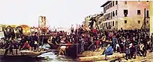 Eleuterio Pagliano (1826–1903), Висадка Ґарібальді та Альпійських мисливців в Сесто Календе 23 травня 1859 р., полотно, олія, 230 см. x 600 см, Варезе, Міський музей.
